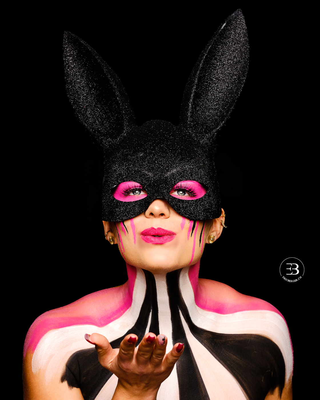 La talentueuse Joana, makeup artiste, a réussi à faire un maquillage du plus bel effet, en reproduisant cet effet « peinture liquide » avec un rose flashy.