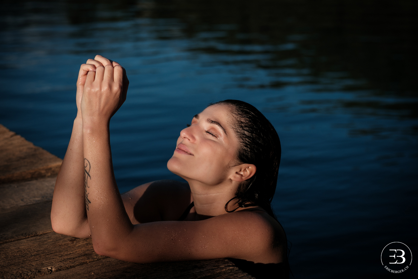 Nous avons convenu d’un style de shooting, au bord d’un lac avec maillot de bain et finir avec quelques portraits dans l’eau. Les températures élevées de l’été ont diminué avec l’automne qui s’approche… Après discussion avec Léa, elle décide de tenter la baignade ce 19 septembre…