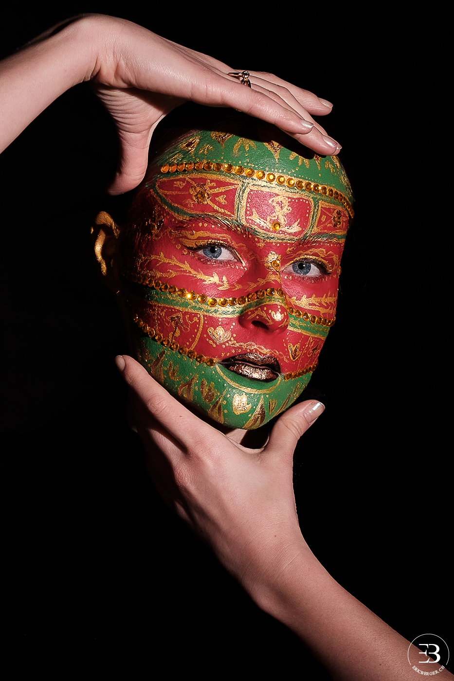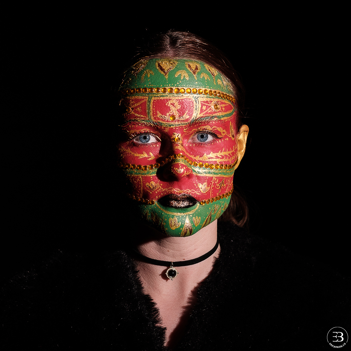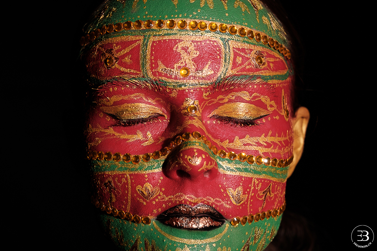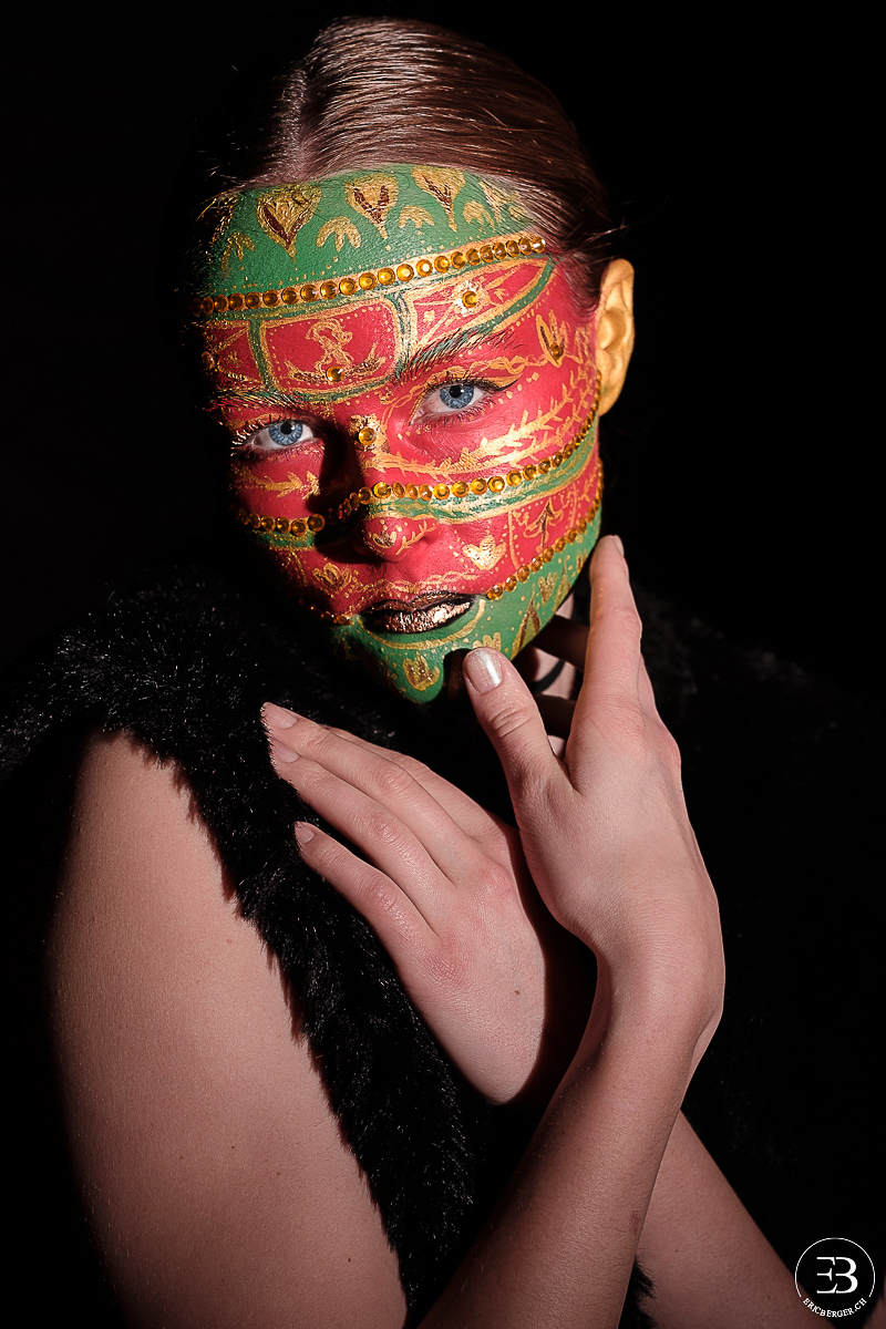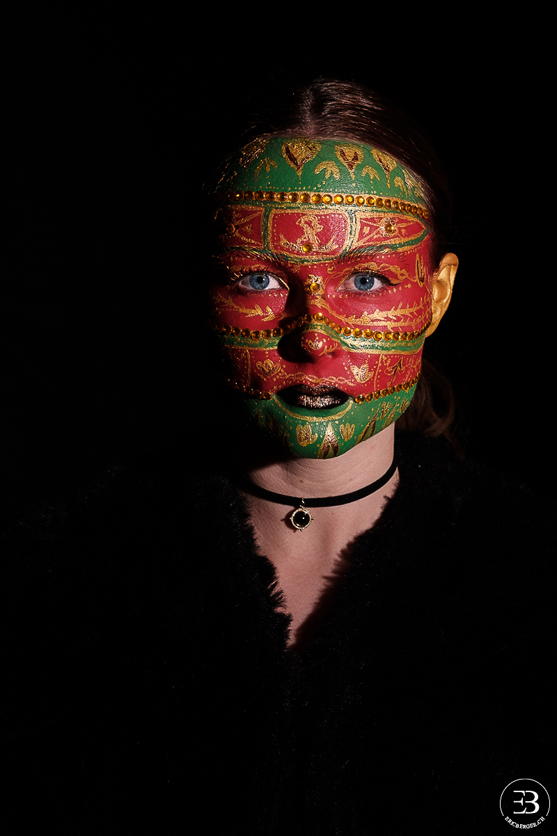 Mylène, maquilleuse avec qui j’avais déjà eu l’occasion de travailler (Minna et les citrons verts et Portrait fleuri) souhaitait effectuer un maquillage dans le style des oeufs de Fabergé. Elle s’est ainsi inspirée de plusieurs d’entre eux pour réaliser ce maquillage.